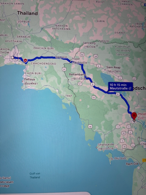Zurück in Pattaya beginnt die Vorbereitung für einen Besuch Kambodschas. Statt mit Wohnmobil ist es ratsam, das Flugzeug zu nehmen. Der Grund: Die Genehmigung einer Wiedereinreise mit dem Fahrzeug seitens der thailändischen Einreisebehörde ist vollkommen ungewiss. |