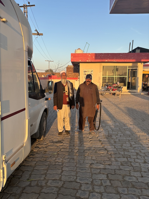 Übernachtung an einer kleinen Tankstelle kurz vor der indischen Grenze. Personenschutz inclusive. |
