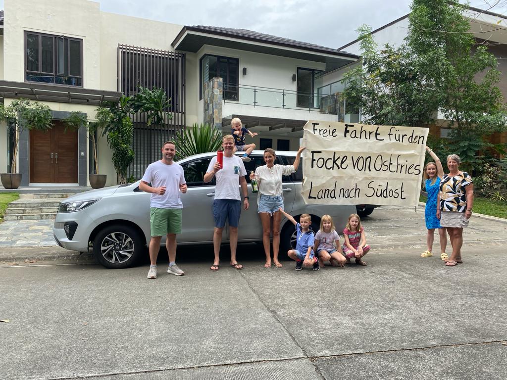 und Familie seit einem Jahr leben. Hier, vor ihrem Haus auf den Philippinen,