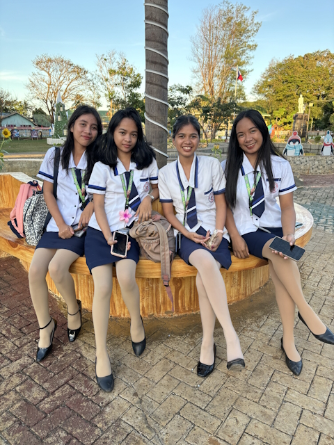 Zufriedene Inselbewohnerinnen nach einem anstrengenden Schultag. |