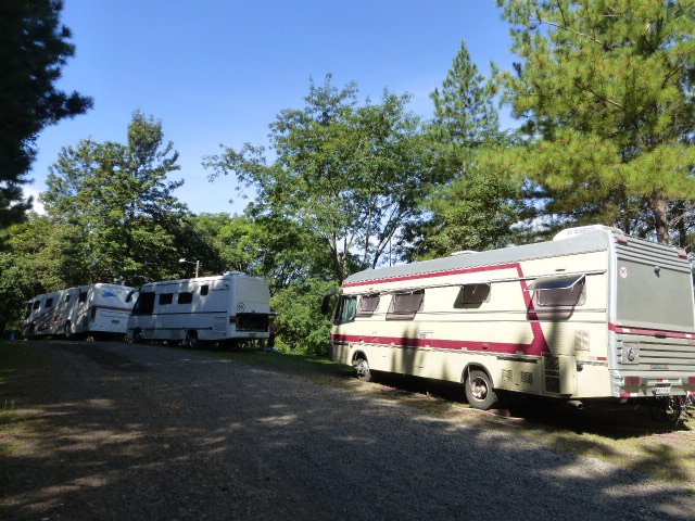 Drei Nächte wollen wir auf dem Campingplatz in Nähe der Iguacufälle bleiben. Er wird geführt von einer 72 jährigen deutsch sprechenden Dame. Schattiger Platz unter mächtigen Bäumen, ein großes Schwimmbad, eine Bar unter der Lapa. Uns gefällt es hier. Wir bleiben acht Tage. Es sind die wärmsten unserer bisherigen Reise. 40 Grad tagsüber, nachts 26 Grad. |