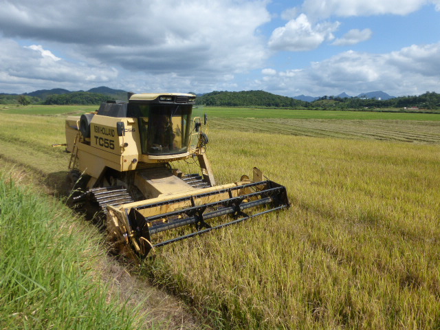 Geerntet wird mit einem modifiziertem Mähdrescher. | |