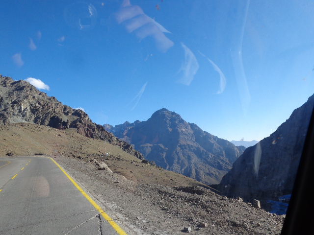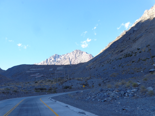 Um sie aus Mendoza/Argentinien abzuholen, muss man die Anden auf einem 3200 m hohen Pass überqueren und der ist für chilenische Verhältnisse nicht einmal besonders hoch. Eine sehr schöne Fahrt vorbei an dem fast 7000 m hohen Acongagua, dem zweithöchsten Berg der Welt... | ||||||